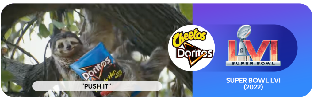 Two fan-favorite snack brands joined forces for Super Bowl LVI’s top ad. To promote Flamin’ Hot Doritos and Cheetos, Frito-Lay put a playful spin on Salt-N-Pepa’s “Push It,” with Charlie Puth beatboxing alongside Megan Thee Stallion. The quirky, animal-filled execution blended nostalgia, humor, and strong branding, driving breakthrough, brand linkage, and broad appeal. Oh baby, baby.